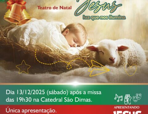 Jesus, luz que nos ilumina. Esse é o tema do Teatro de Natal 2025 e você é a(o) nossa(o) convidada(o) especial. Única apresentação: 13/12/2025 (sábado) após a missa das 19h30…