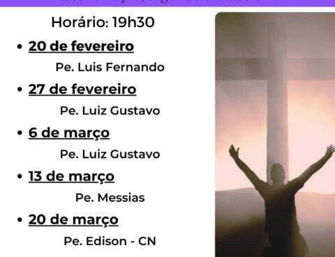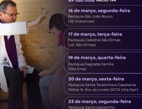 Inscrições nas missas dos finais de semana, na secretaria e pelo QR Code fixado nas portas da Catedral Início – Semana de 28 de fevereiro.