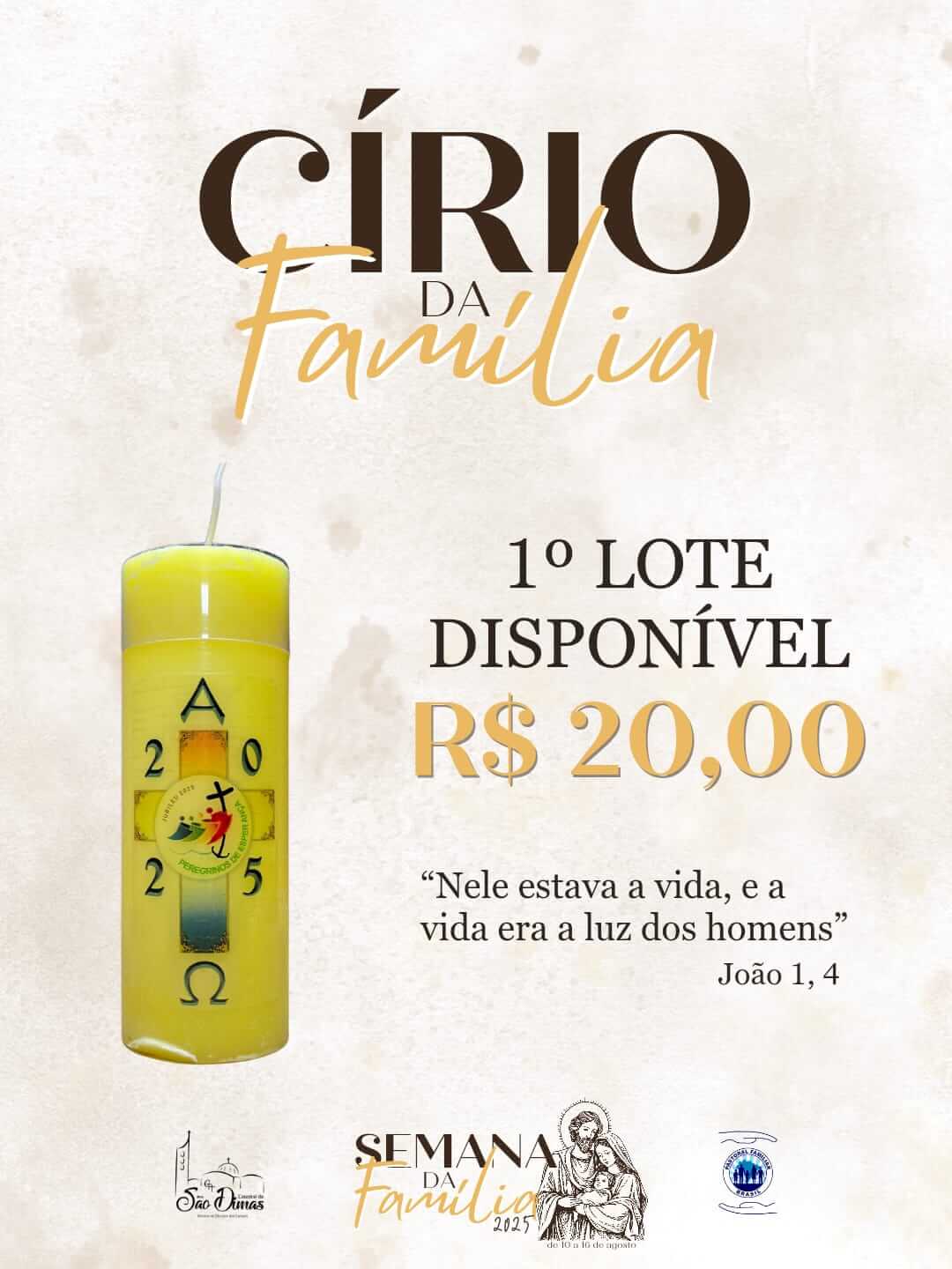 A PREPARAÇÃO E BÊNÇÃO DO CÍRIO SERÁ NO ENCERRAMENTO DA SEMANA DA FAMÍLIA, DIA 16 DE AGOSTO, ÀS 19H30.
