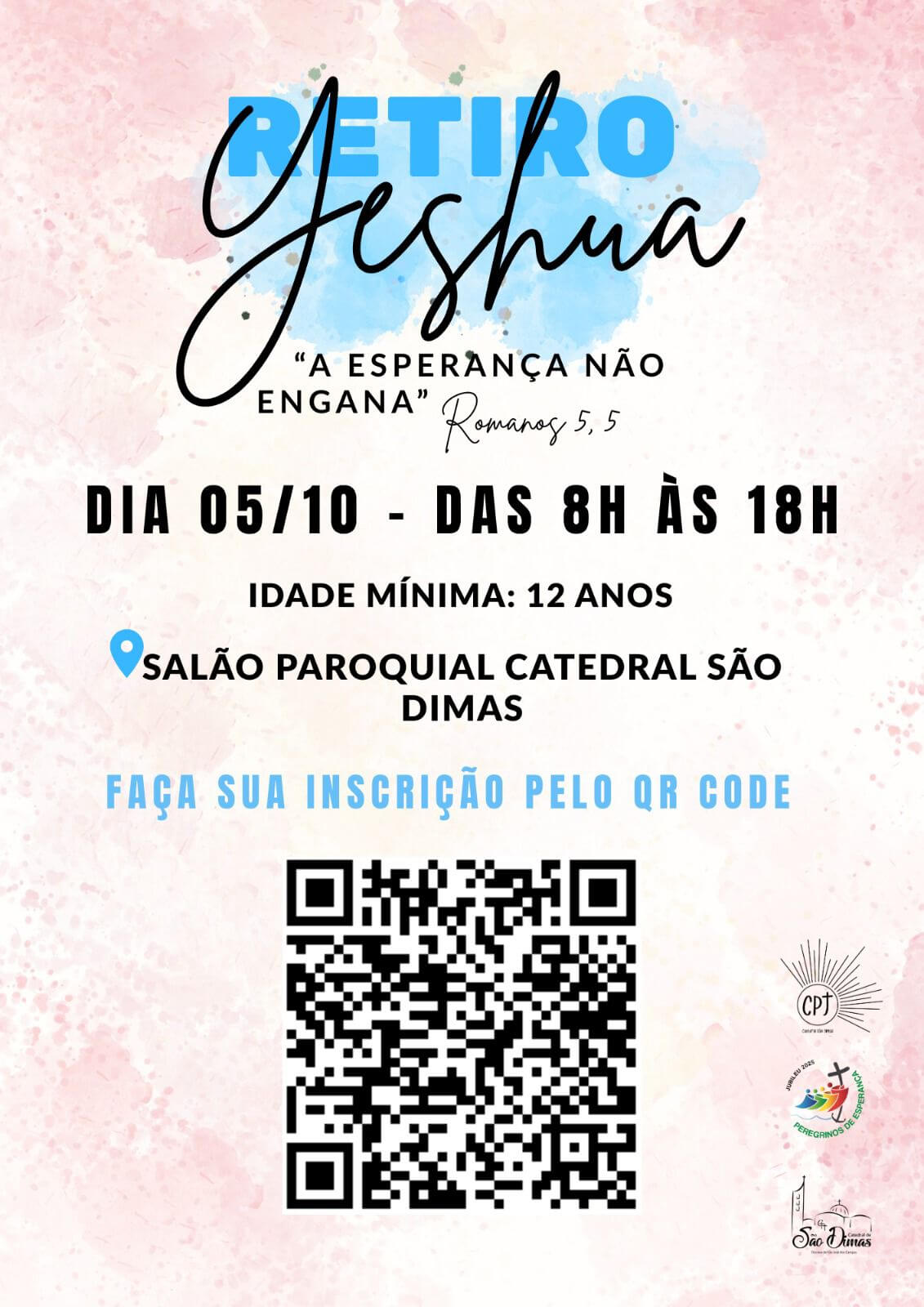 Informações no instagram @cpjcatedral ou pelo QR CODE no cartaz nos quadros de avisos e nas mídias sociais da paroquia.